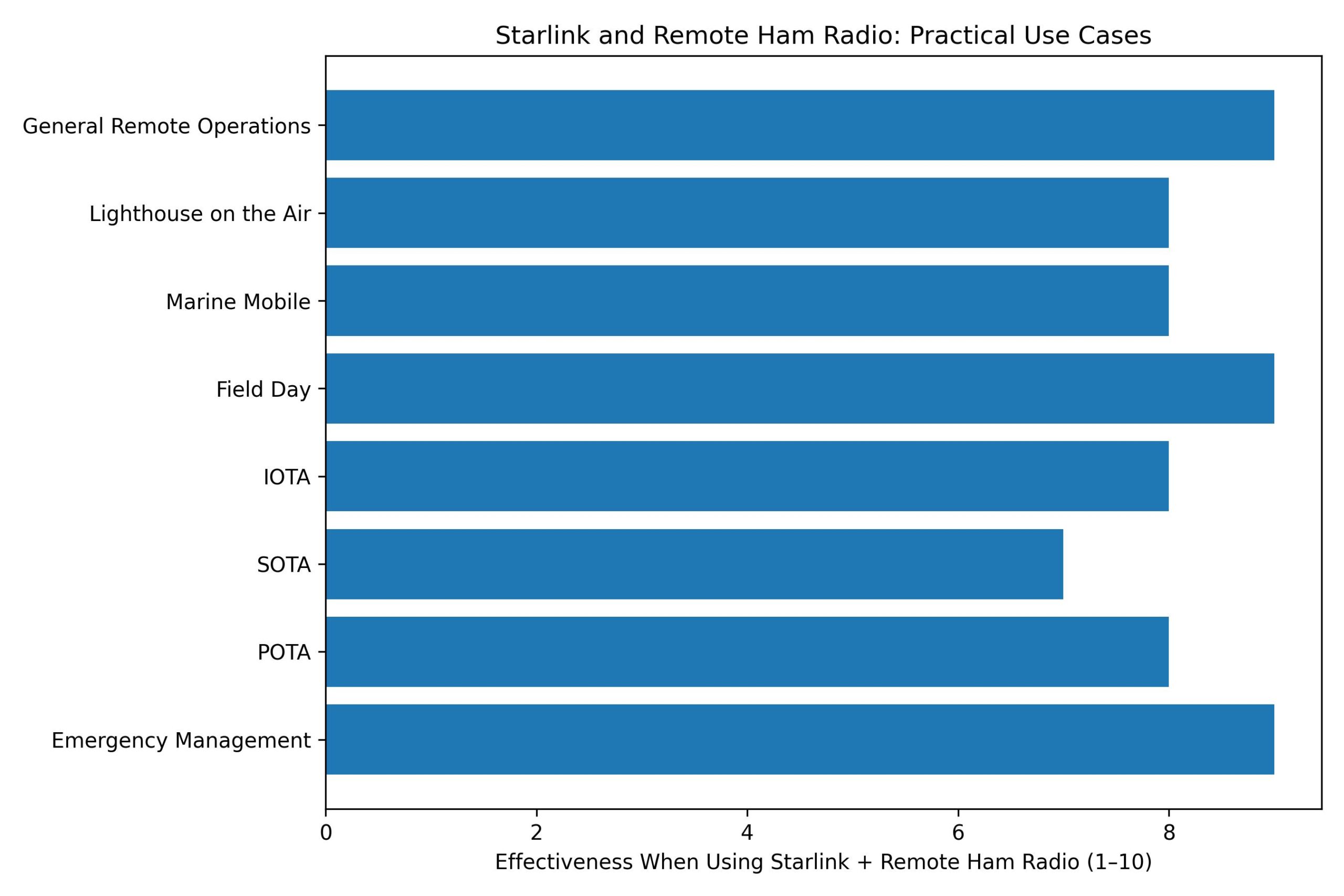 The sideways bar chart below illustrates how Starlink improves remote ham radio operation across key dimensions.